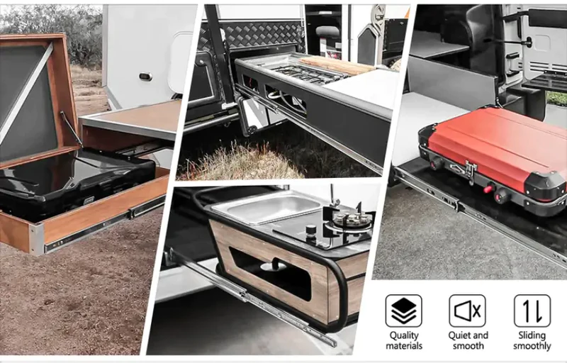 The heavy-duty drawer runners can bear a maximum load of 220KG and can bear the weight of two adults. They are suitable for application scenarios such as telescopic beds, RV magic boxes, and industrial drawers.